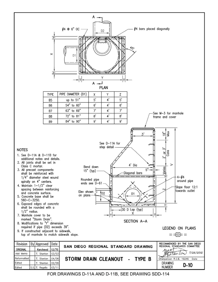 The Type B Cleanout is used whenever you need to connect more than one pipe. This structure does not act as a surface drain, only a place to enter and clean the system. The Type B Cleanout can accomodate many pipe sizes by increasing the "X" and "Z" dimensions of the structure. The most typical is the Type B5 Cleanout which is a 4' x 5' core that is usually 5' tall, with the remainder of the height consumed by stacking. The B5 will acommodate up to 51" pipe. The Type B Cleanout is very similiar to the Type A Cleanout, except for its larger 4' opening on the top of the structure. These are usually used when the structure is required to be very deep as it gives more room to enter.