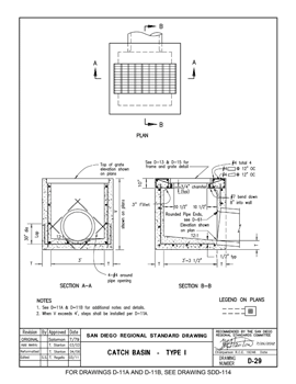 The Type I Catch Basin is normally used in parking lots. This Catch Basin has a core dimension of 3' x 3'3" that will extend full height from the pipe to the curb. The 2'x3' heavy traffic frame and grate are centered on the top of the structure. This Catch Basin has a thickened concrete top with special beam steel. Normally this structure would be used in an area with traffic weighing more than the avverage car. Typically it will have one pipe coming out of it, but may have more pipes if necessary.