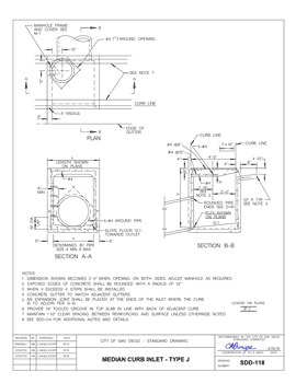 The Type J Curb Inlet is typically used in a median where you have a curb on both sides of the structure. The 24" light traffic ring and cover sit in the median. This structure has a 4' x 4' core that will extend full height from the pipe to the curb. This Curb Inlet collects water from the gutter and drains into pipe below. Typically it will have one pipe coming out of it, but may have more pipes if necessary. There may be an opening one one side, with a closed curb on the opposite, or this structure may have an opening on two opposing sides. Another use would be if there were exisiting utilities behind the curb that required a narrower structure.